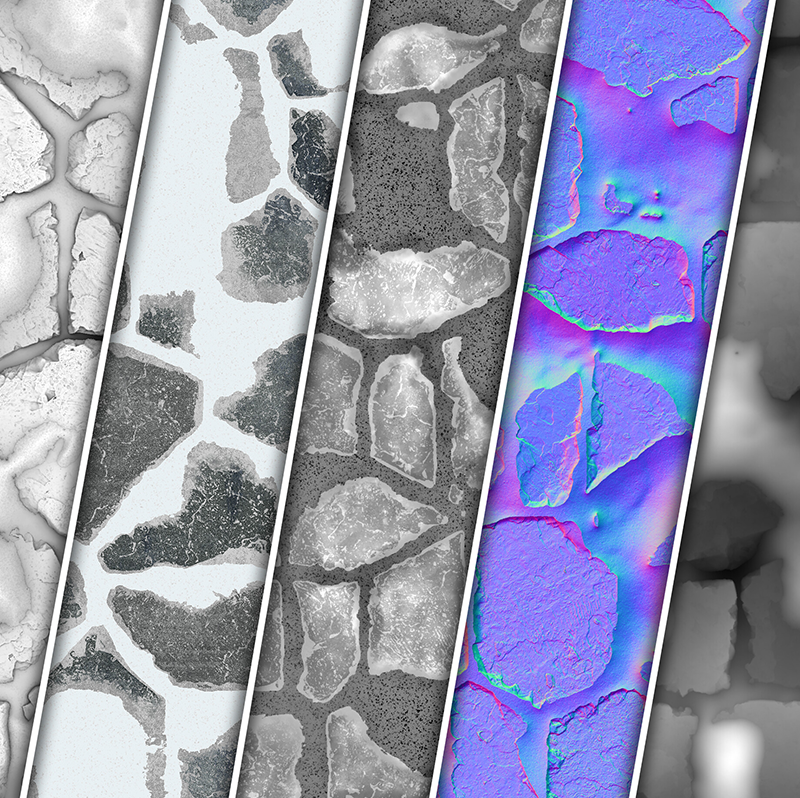 Gran parte del desarrollo moderno en videojuegos se basa en PBR (Physically Based Rendering). La idea es sencilla: en lugar de pintar luces y sombras directamente en una textura, definimos propiedades físicas que respetan cómo se comporta la luz en el mundo real. Los mapas fundamentales con los que trabajarás casi siempre son: