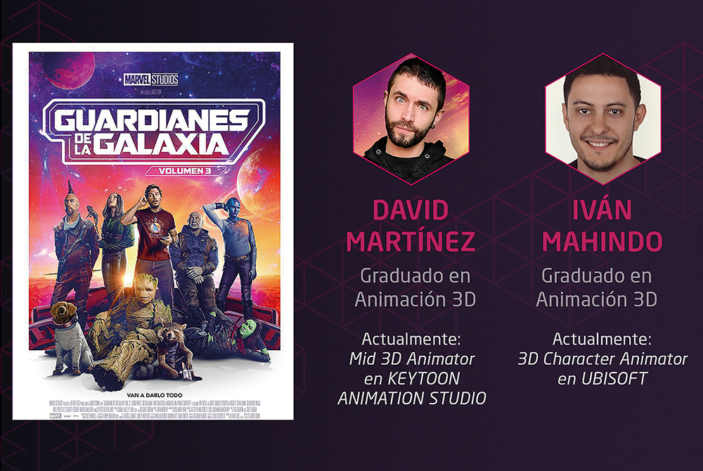 Precisamente en Guardianes de la Galaxia vol.3 ha participado Iván Mahindo, actualmente 3D Character Animator en Ubisoft. Iván nos contaba comenzó desde cero en Animum con el Curso de Fundamentos de la Producción 3D y tras especializarse en el Máster de Animación de Personajes, no cejó en su empeño hasta conseguir su primera oportunidad laboral tras perfeccionar su portfolio con el Workshop Explode your Reel: