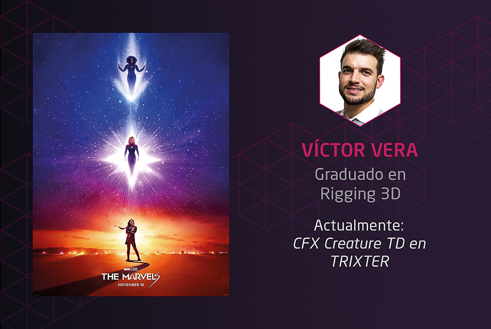 Por su parte, Víctor Vera, actualmente CFX Creature TD en Trixter y graduado de Rigging de Personajes 3D en Animum, ha formado parte del equipo del que se espera sea el próximo éxito de la franquicia:The Marvels. Esta esperada secuela de Capitana Marvel apelará a los más seguidores del estudio, y tiene previsto ver la luz en noviembre de este mismo año.